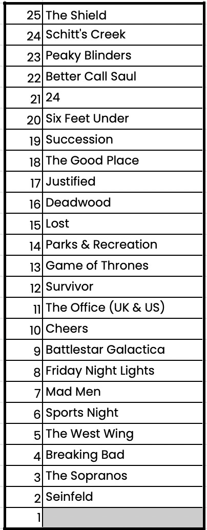 It’s why it’s EASILY my 2nd favorite show of all time. What’s first? You can probably guess … but you’ll need to wait a week. Oh, indeed.